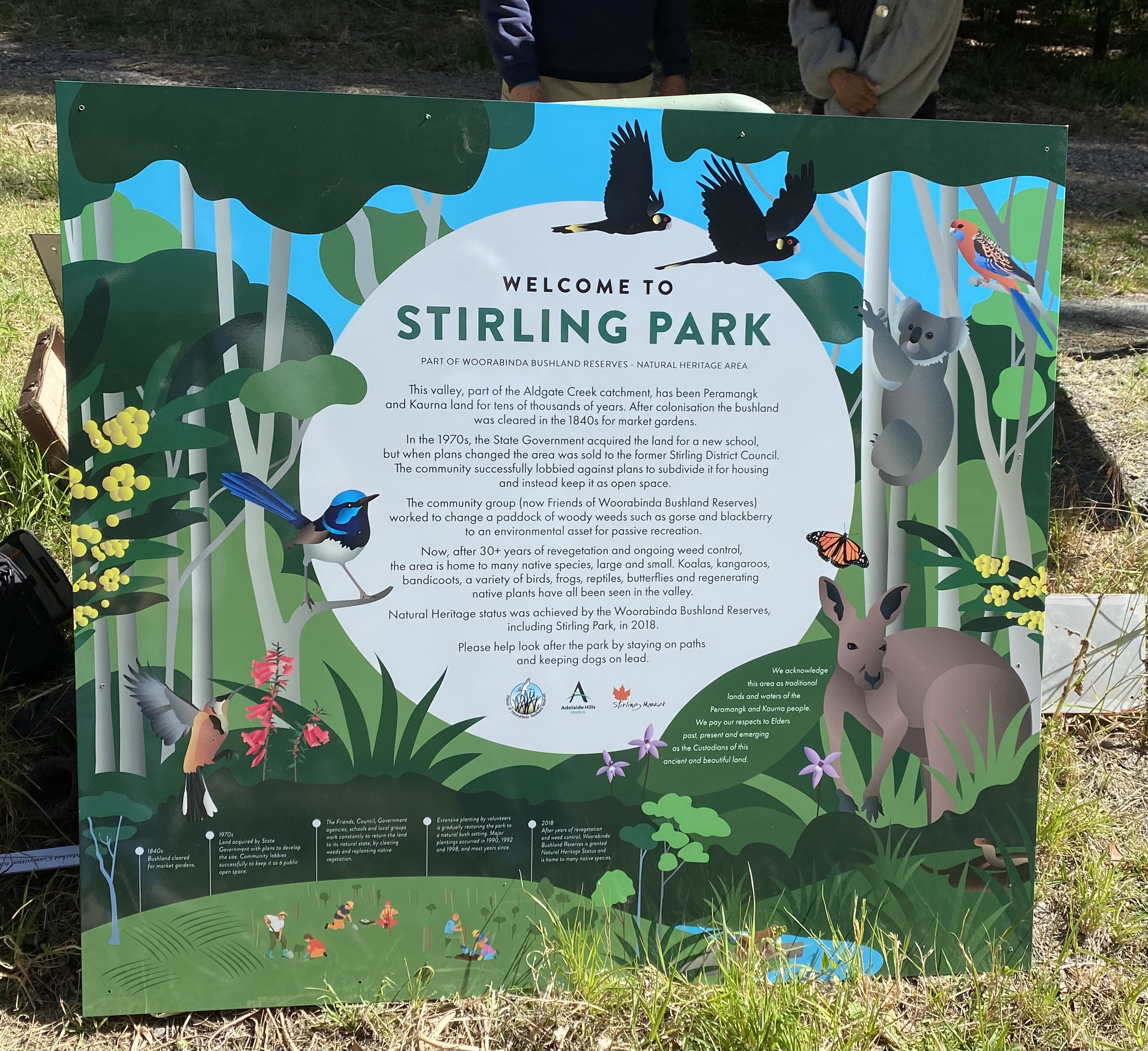 Stirling Park forms an important part of the catchment of Aldgate Creek. Plans were developed and work undertaken to re-establish a series of ponds in the wetland area, which has improved the quality of water in the creek and reduced the threat of flooding which occurs occasionally in Aldgate.